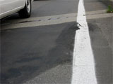 舗装の流動現象ですが、今日の暑さ(各地の温度表示板では34度なんて数字も見られました)でアスファルトがへろへろになってタイヤで押し出された状態ですね。