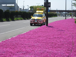 国道沿いの芝桜がとてもきれいです。(≧▽≦)