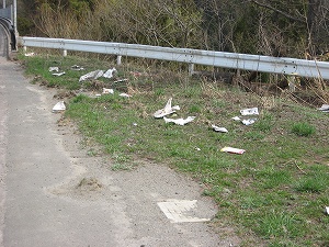 落下物は雑誌、板バネ、ロードキルはなしでし