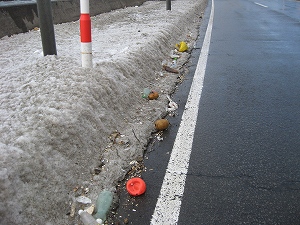 落下物はトラックの燃料ぶた、ロードキルは