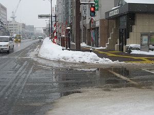 今日のパトロール報告は、道路中央に雪のかた