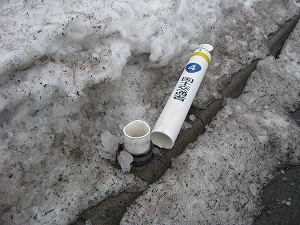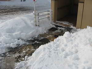 下道出入り口に吹きだまった雪を確認していま